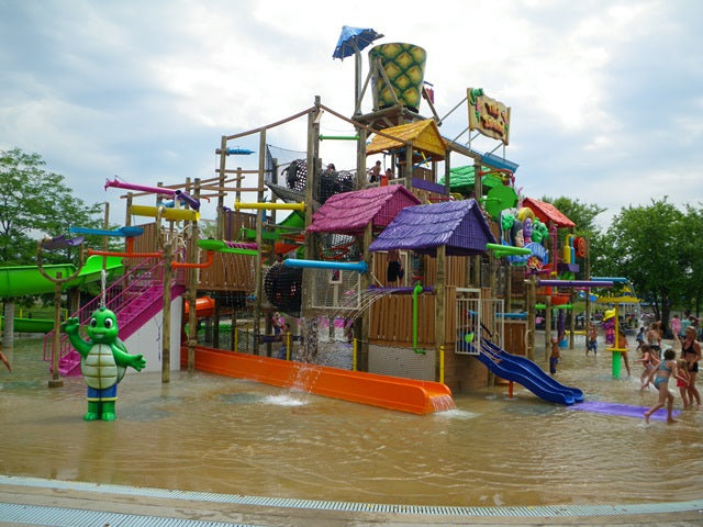This fiberglass retrofit slide was developed in 2017 specifically to replace the plastic slides installed on hundreds of SCS Aquatic Play Structures. The now obsolete plastic slides pose several problems for waterpark operators.  First, they are not dimensionally accurate, so the ride quality is not great.  Secondly, because they are plastic, they cannot be repaired or restored.  Paint will not stick to the plastic, and there is not a good system for making repairs. When the slides begin to crack there are no good options for keeping them in service.  Also, when small cracks get worse, it tends to happen suddenly, which can present a substantial safety hazard to riders.